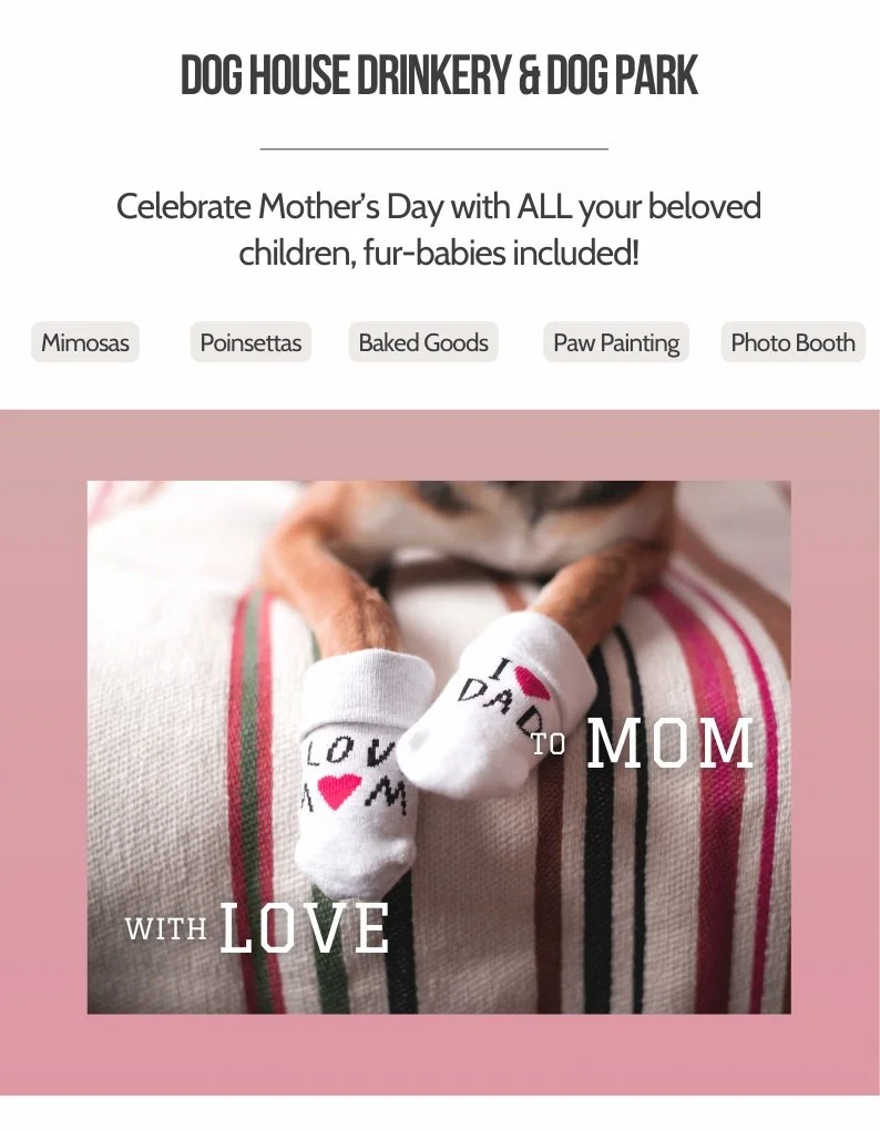 Be sure to keep an eye out for our upcoming springtime events lineup, filled with tail-wagging excitement. We can't wait to share more of The Dog House experience with you in the days to come.